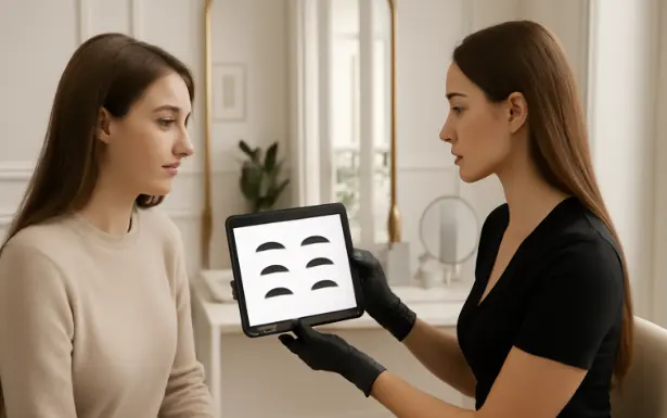 The best results always begin with a consultation. The artist should assess your face shape, existing brow hairs, skin type, and your aesthetic goals. Based on that, they sketch a design you both agree on. This is not “one size fits all,” it needs to be custom.